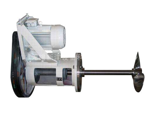 驅動裝置采用普通電機或防爆電機直接通過皮帶輪驅動裝置與攪拌軸聯(lián)接。攪拌軸由雙向推力軸承和水潤滑滑動軸承支承,具有足夠的強度和剛度,并具有好的穩(wěn)定性。
